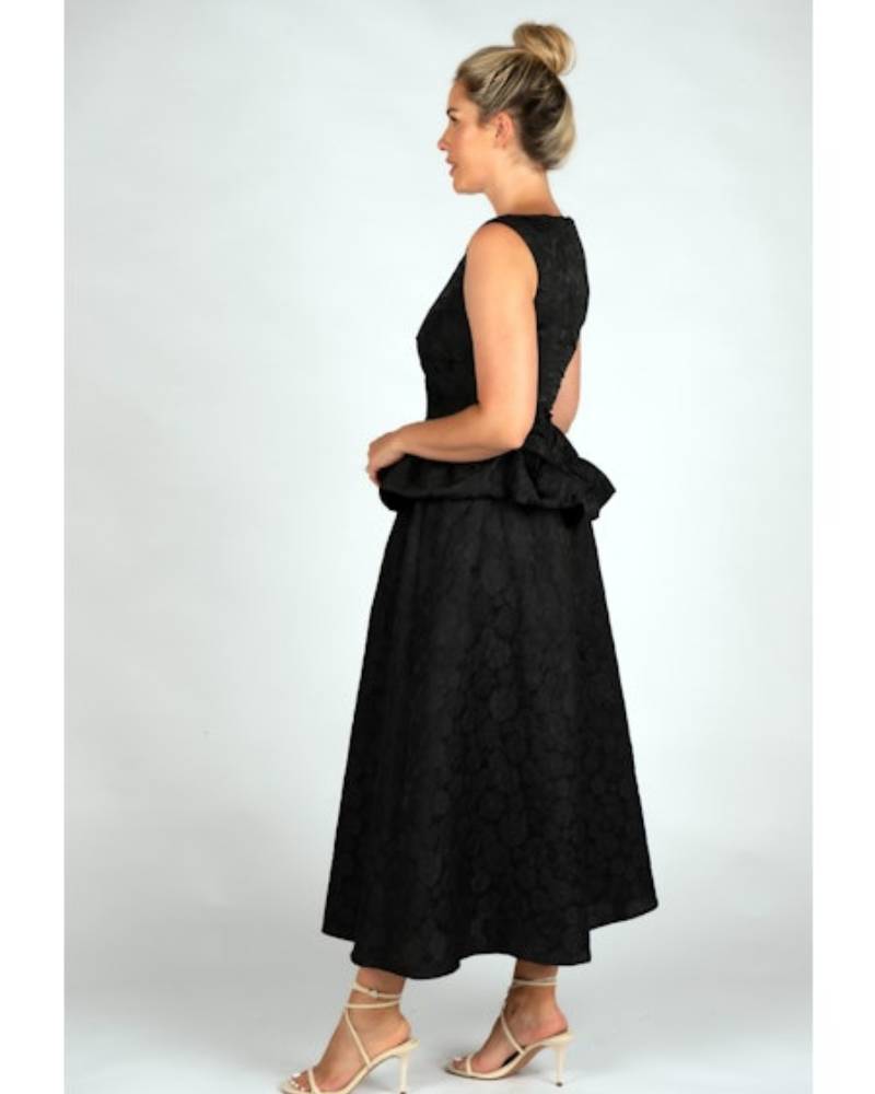 Introducing the Bronte Black Brocade Skirt from Sincerely Ours. Perfectly paired with the Birdie Top, this skirt is holiday-ready. With its elastic waistband and true-to-size fit, you'll feel comfortable and stylish all day (and night) long.