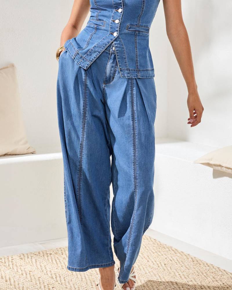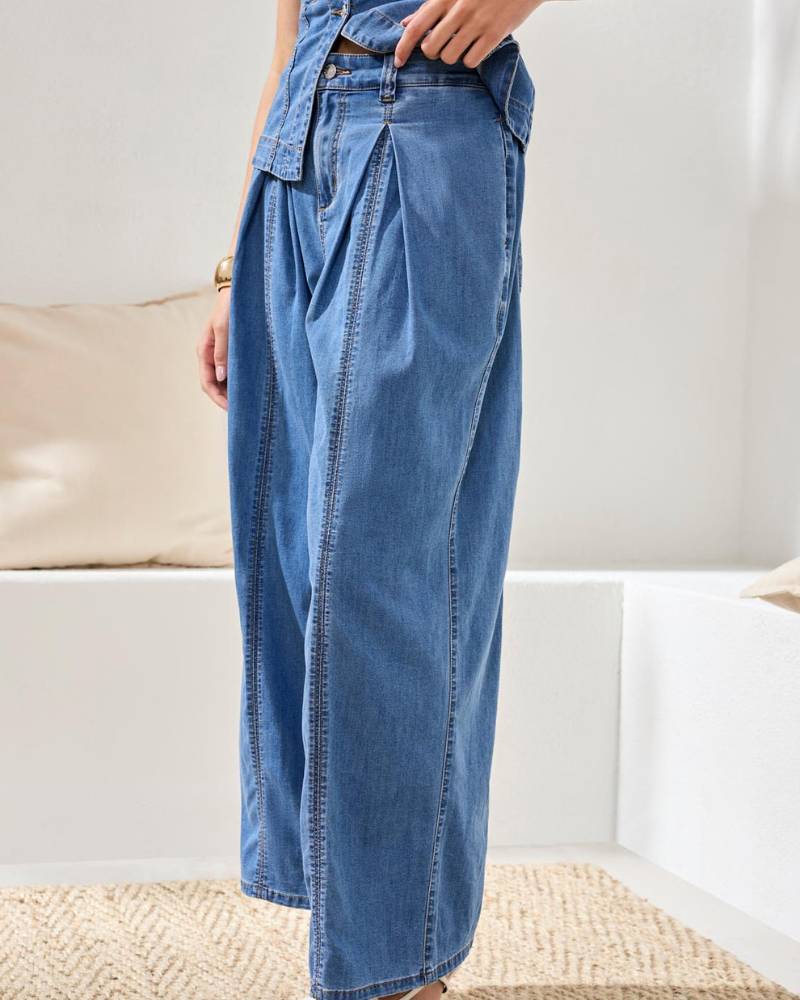Effortless style meets unexpected detail with these Brooke Pleated Flowy Denim Jeans. Featuring signature front pleating that adds movement and visual interest, they're crafted from a comfortable cotton-poly blend that moves with you. The relaxed, flowy fit keeps things breezy without sacrificing structure. Machine washable for easy care and true-to-size fit means you'll nail it on the first try. Perfect for anyone who wants their denim to do more than just exist.