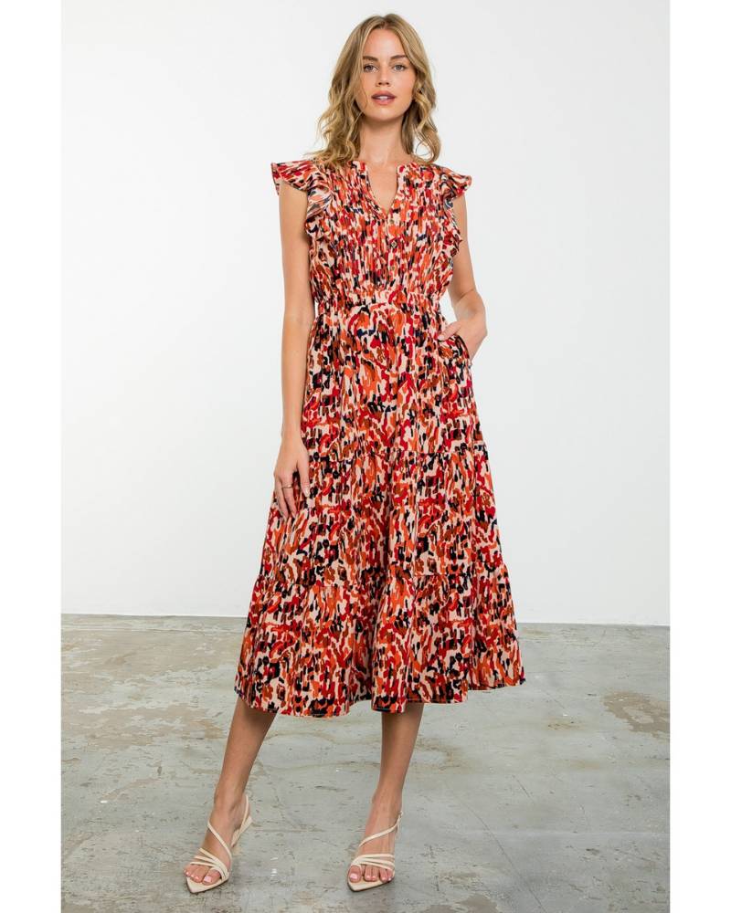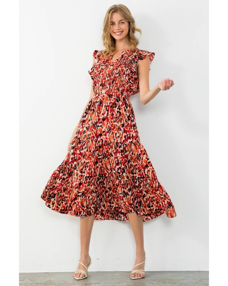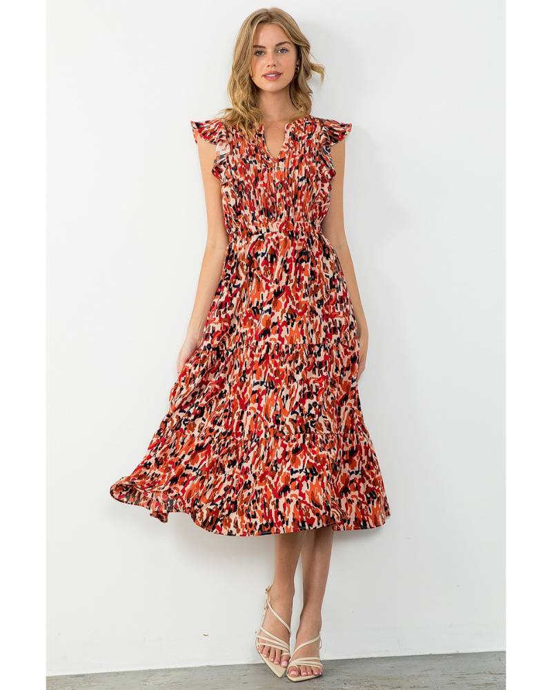 The Abstract Autumn Maxi Dress offers a lightweight, sleeveless design with tiered layers for effortless style and comfort. Made from a woven blend of 95% polyester and 5% spandex, it provides a flattering fit true to size with added ease of movement. Practical pockets enhance functionality, while the durable fabric ensures easy care and washability, making this dress an ideal choice for both casual and refined autumn looks.