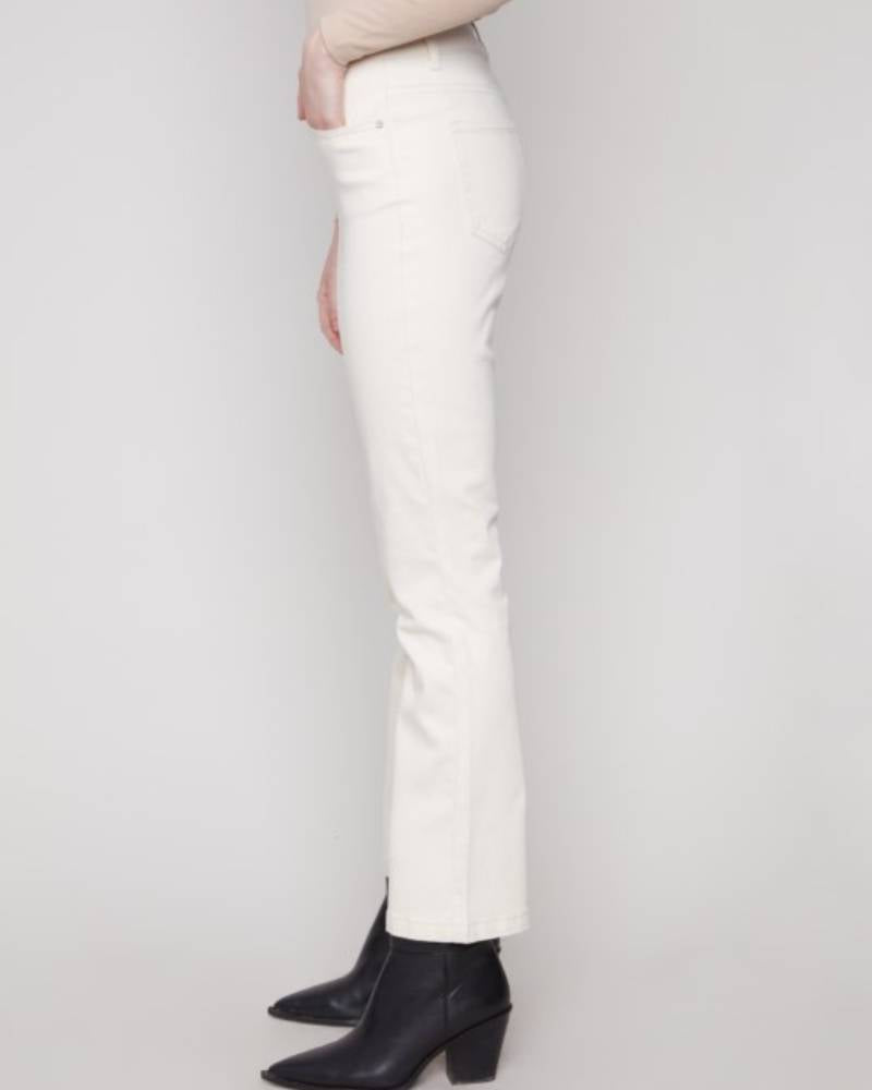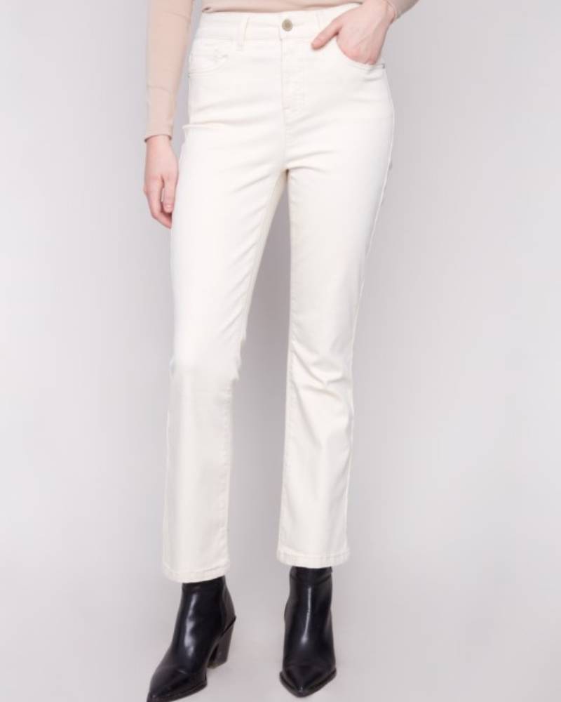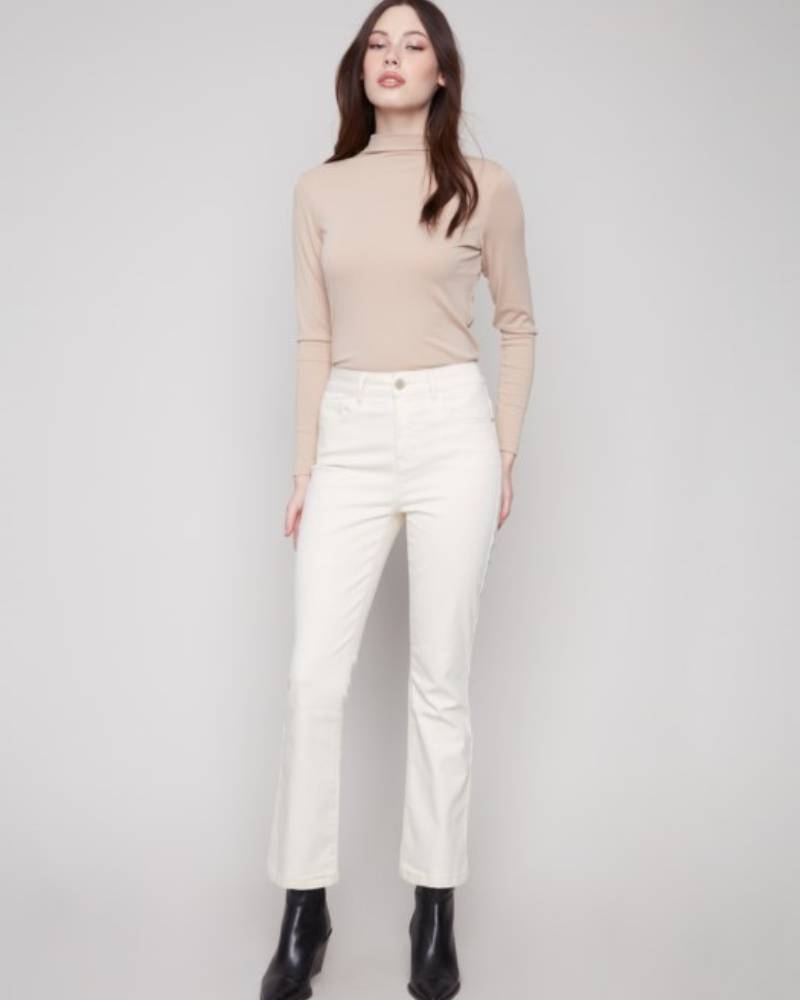 These Bootcut Stretch Denim Jeans from Charlie B offer a classic fit with a regular rise and a flattering bootcut leg. Crafted from a durable blend of 73% cotton, 23% polyester, 3% viscose, and 1% spandex, they provide slight stretch for comfort without compromising shape. The 28-inch inseam and 9 3/4-inch leg opening make them versatile for various footwear. Easy to care for, they can be machine washed in cold water and hung to dry, maintaining their quality and fit over time. Ideal for those seeking a reliable, stylish pair of jeans available in Light Blue & Natural.