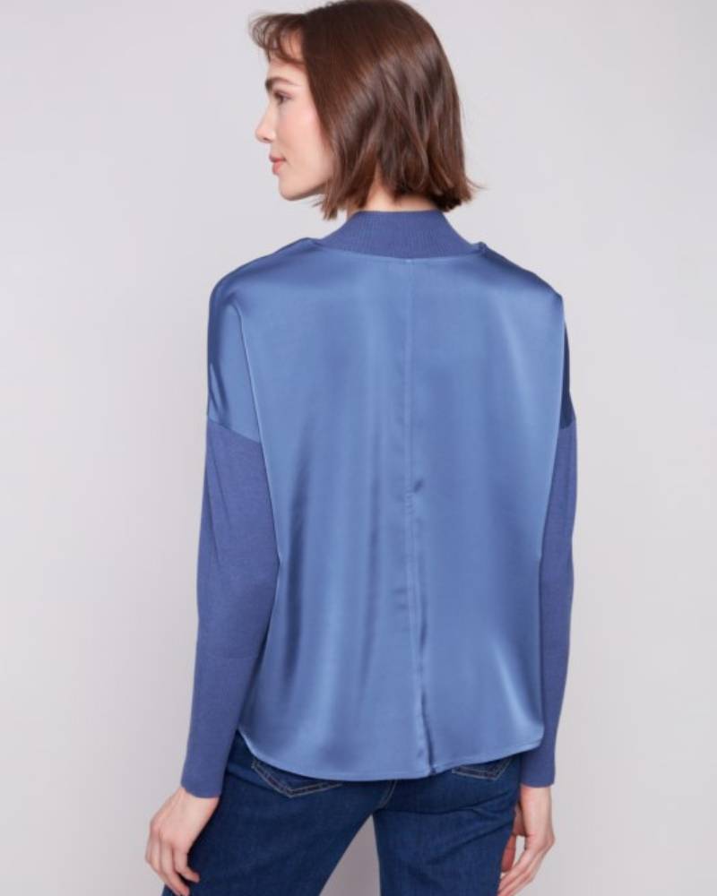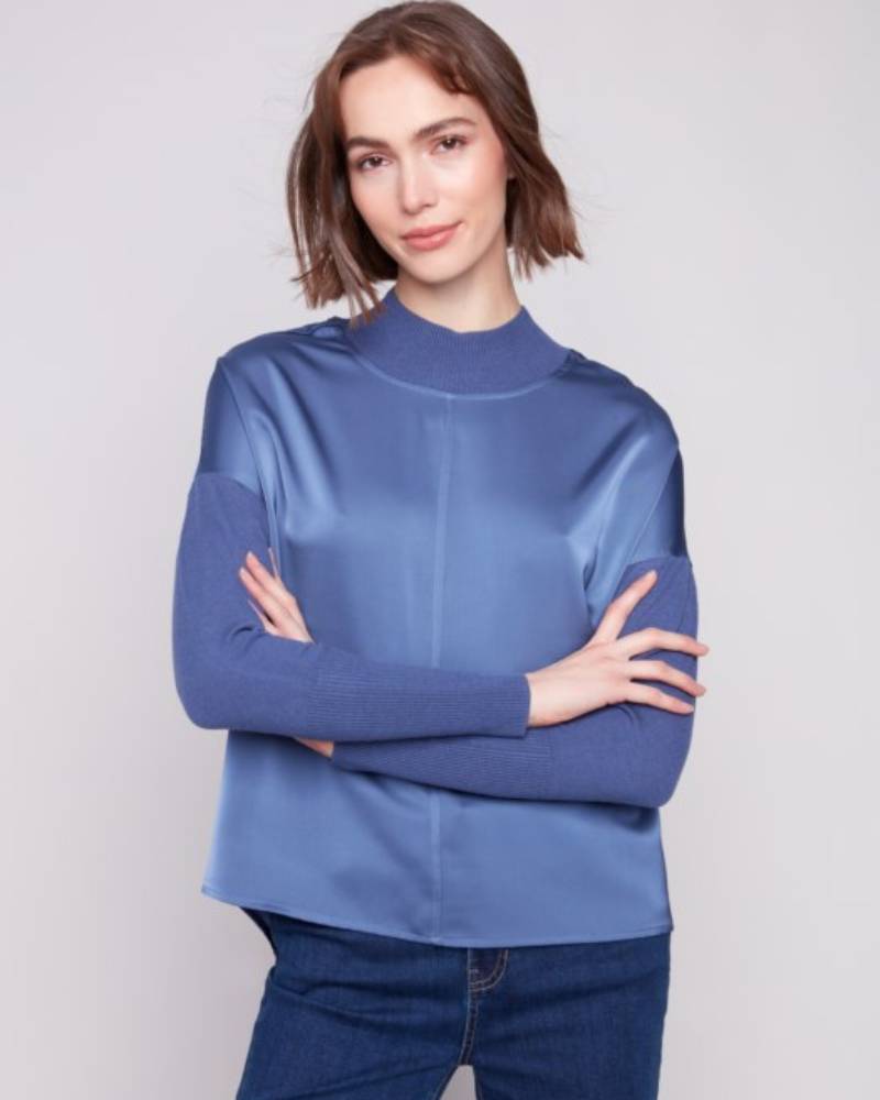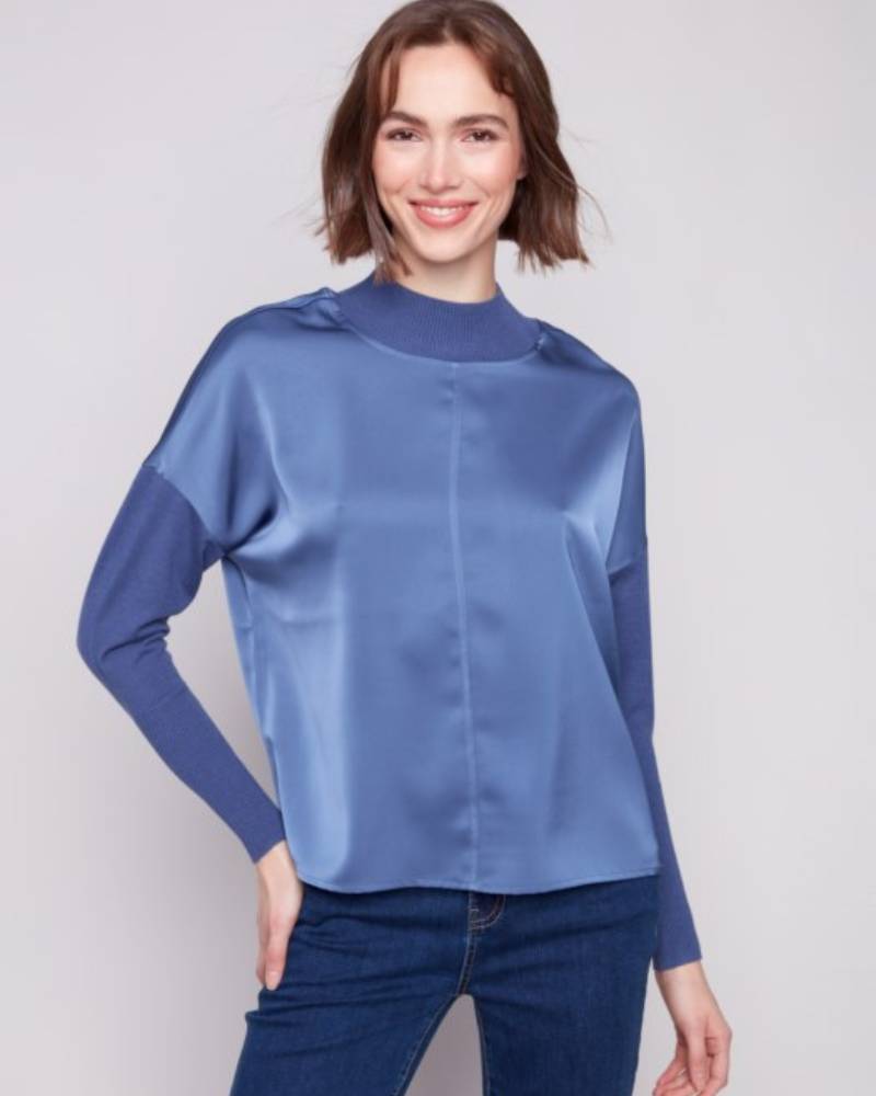 Satin Knit Mock Neck Top