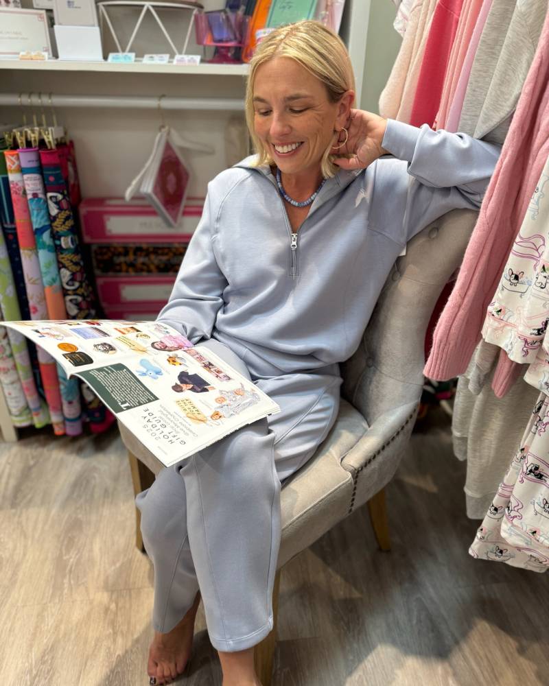 Elevate your loungewear game with this dreamy Spanx duo! The Air Essentials Half Zip paired with the classic barrel pant in buttery-soft Himalayan Cloud is your new travel and lounge essential. True-to-size fit means zero guessing—just pure comfort. Whether you're jet-setting or settling in for a cozy night in, this set delivers that perfect balance of effortless style and cloud-like comfort. Because looking put-together while feeling completely relaxed? That's the dream.
