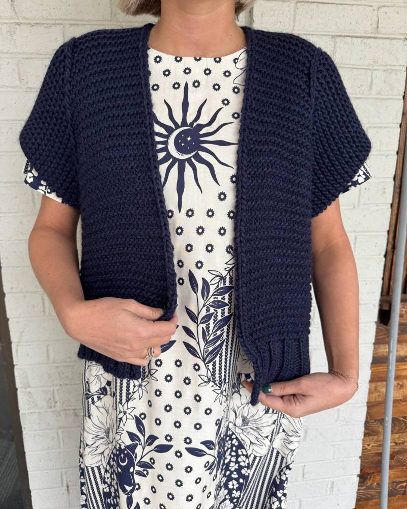 Effortlessly chic and oh-so-cozy, this navy heather cardigan from Scandal Italy is your new layering essential. The short sleeves and open front design make it perfect for throwing on whenever you need that extra touch of warmth without the bulk. Crafted from quality knit in Italy, it's designed to run true to size for a flattering fit. Hand wash or dry clean to keep it looking fresh season after season.