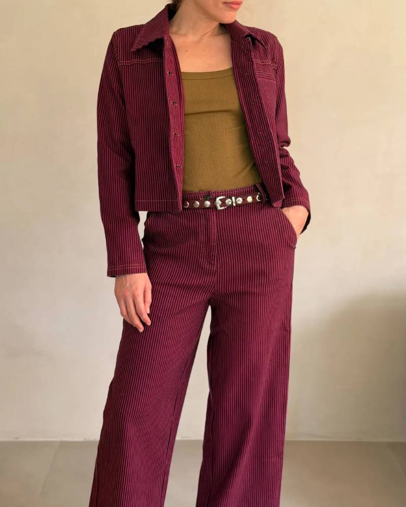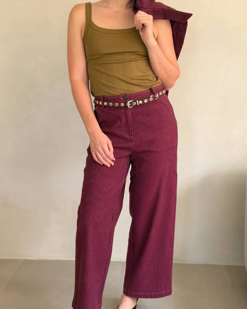 Get playful with FRNCH's Nigelle Fuschia Pants! Made from exclusive fabric, these purple-striped pants stretch for all-day comfort. They fit true to size with front and back pockets, belt loops, and a button-and-zipper closure. 97% cotton and 3% elastane, add a fun pop of color to your outfit without sacrificing comfort.