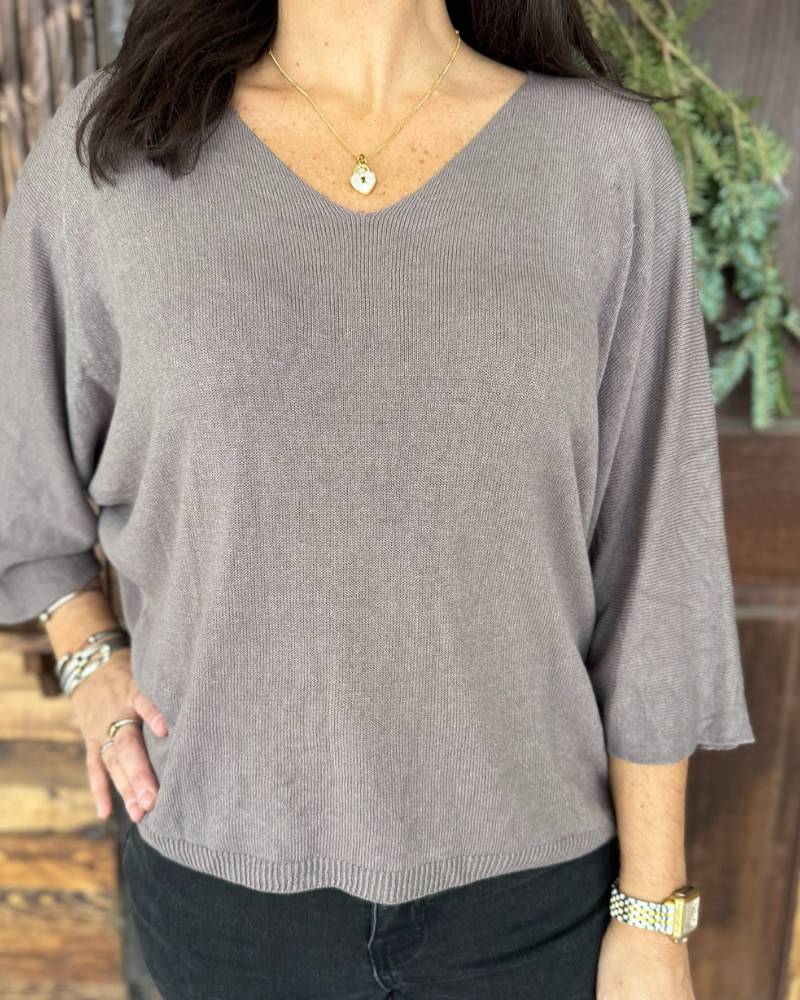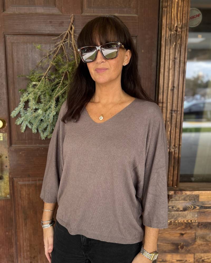 Wrap yourself in luxury with the Velma 3/4 Sleeve Top from Scandal Italy. This dreamy taupe piece features a sumptuous cashmere blend that feels like a gentle hug against your skin. The perfectly proportioned 3/4 sleeves strike that sweet spot between cozy and chic, making it endlessly versatile for layering or solo styling. Crafted in Italy with meticulous attention to detail, this top deserves a little TLC—hand wash or dry clean to keep it looking pristine. Your new go-to for effortless elegance.