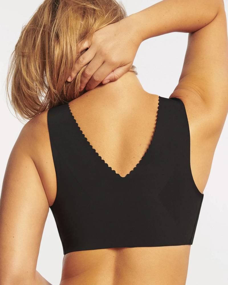 The Evelyn Bra expertly combines dramatic push-up support with a smooth, seamless structure designed to mold perfectly to your shape. Its scalloped edges protect delicate breast tissue from irritation, while the patented EB Core® technology delivers a distinctive 3D lift. Complemented by a smoothing back band and sides, this wireless bra offers exceptional comfort and a flattering silhouette, making it the ultimate choice for both support and style. Available in Sand & Black.