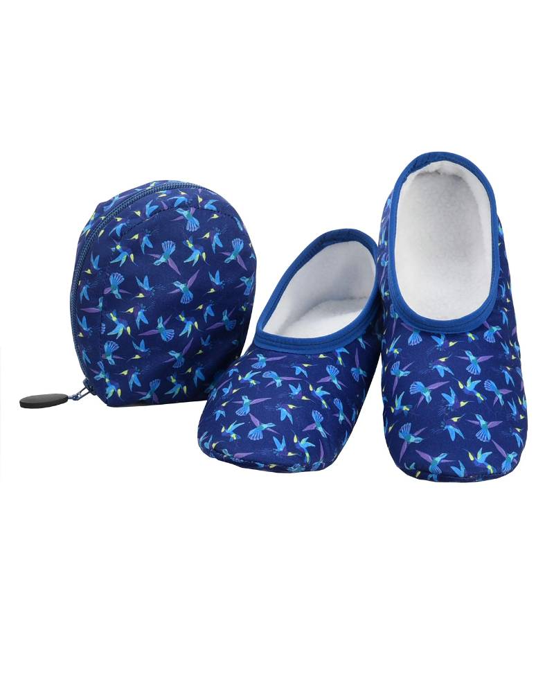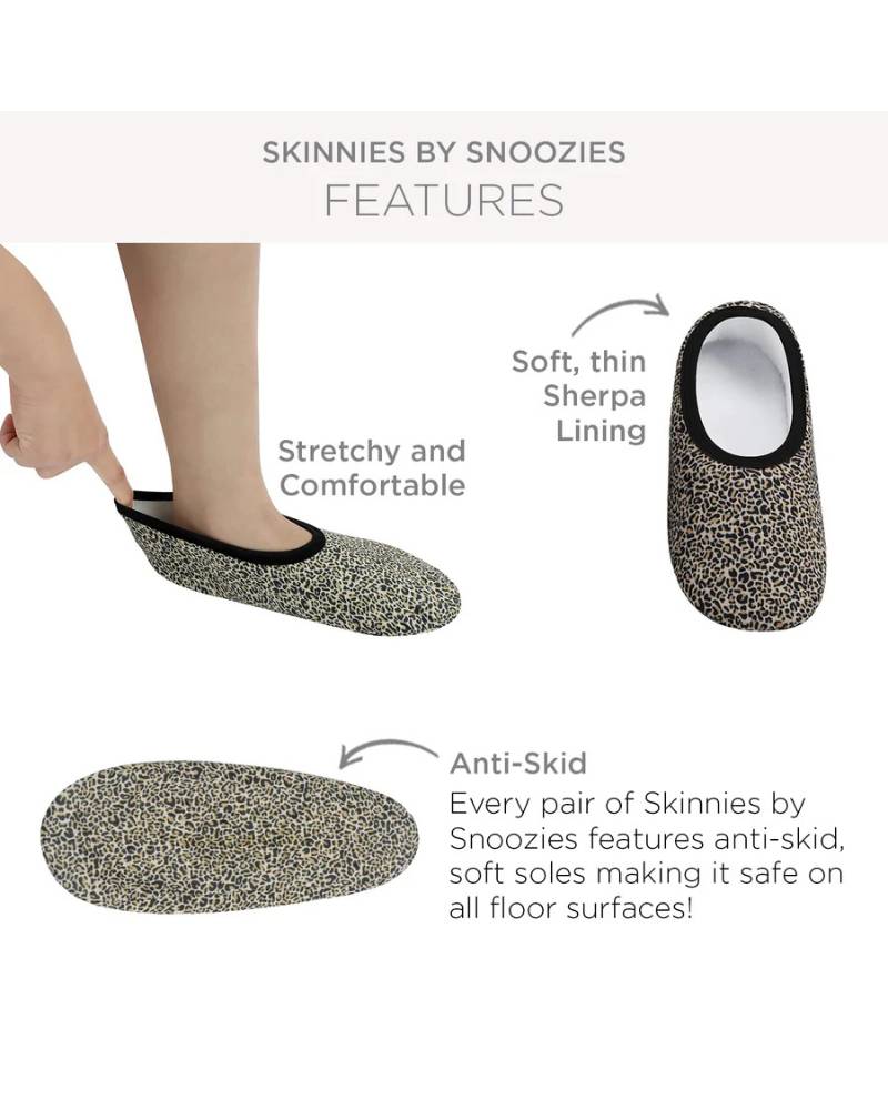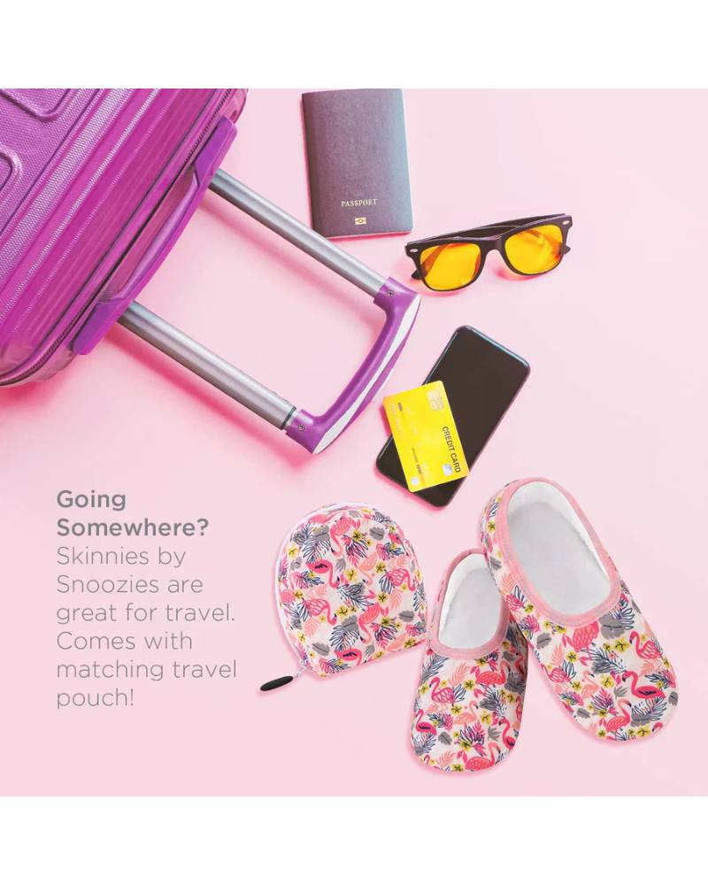 Snoozies® Skinnies® lightweight slippers combine cozy sherpa lining with a comfortable stretch fit, perfect for travel or everyday wear. The slip-resistant bottoms keep you safe and secure, while the compact design fits easily into your bag for planes, trains, or cruises. Includes a convenient travel pouch for on-the-go comfort. Machine washable and shrink-free—simply turn inside out and wash for a fresh pair every time. Arrive at your destination warm, cozy, and stylish.