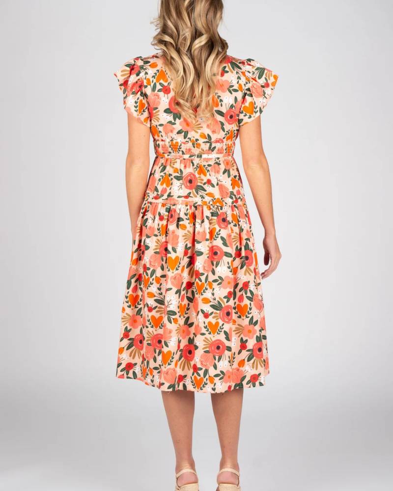 Introducing the Cala Blushing Bloom Midi Dress—your new go-to for looking effortlessly put-together! This charming dress features a flattering V-notch neckline, playful flutter sleeves, and a cinched waist with an adjustable tie that lets you customize your silhouette. The tiered skirt twirls with every step, while the lightweight fabric keeps things breezy and comfortable from morning to night. Pair it with heels for a polished look or slip on sandals for weekend vibes—this versatile beauty works hard so you don't have to!