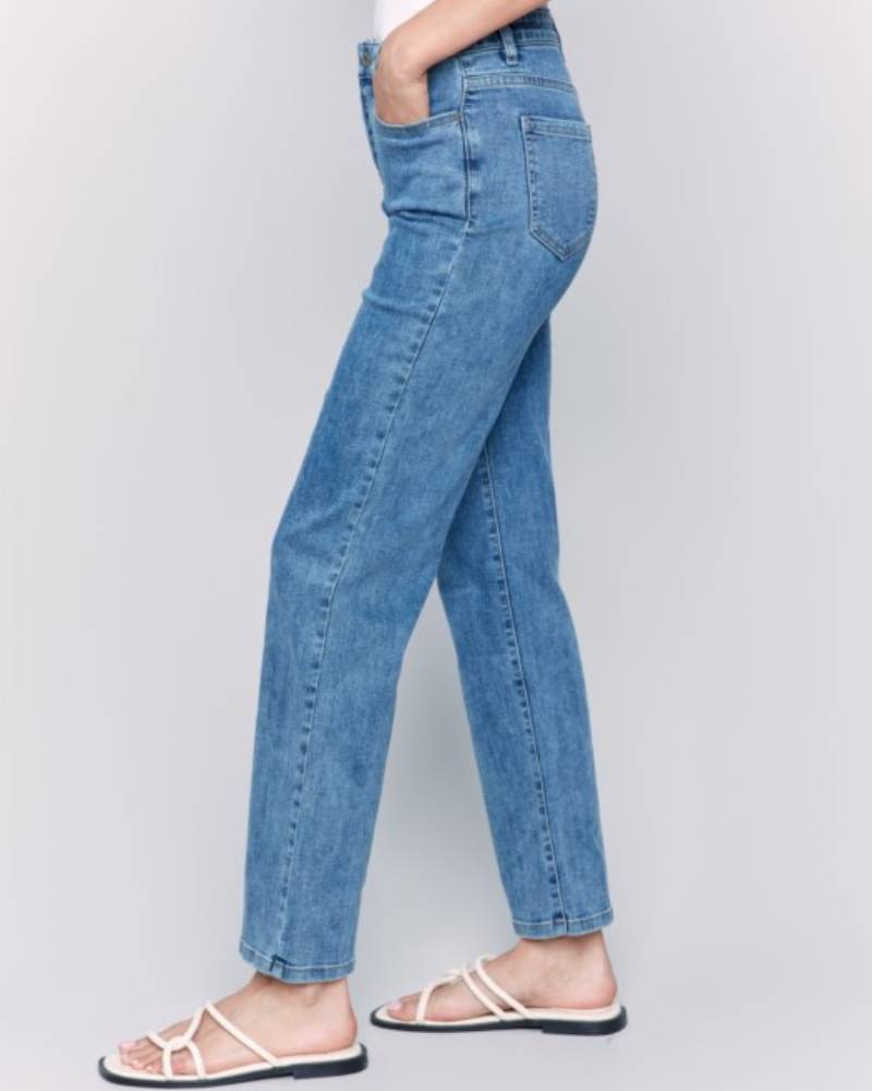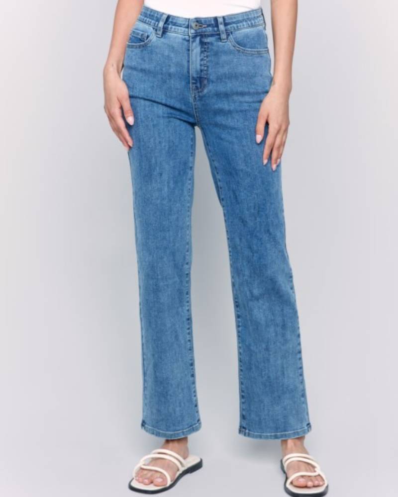The Charlotte Straight Leg Jeans feature a regular rise and a straight leg silhouette, combining classic style with modern comfort. Crafted from a blend of 73% cotton, 23% polyester, 3% viscose, and 1% spandex, these jeans offer durability, slight stretch, and a soft feel. The inside elastic waistband ensures a secure yet flexible fit throughout the day. With a 30" inseam and a 9" leg opening, these jeans provide a tailored look suitable for various occasions. Ideal for those seeking both sophistication and ease in their wardrobe staples.