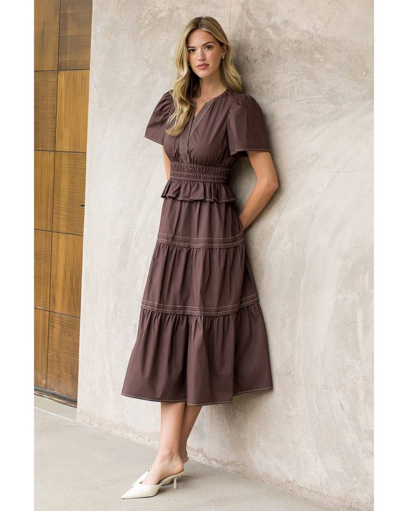 Chocolate Tiered Midi Dress
