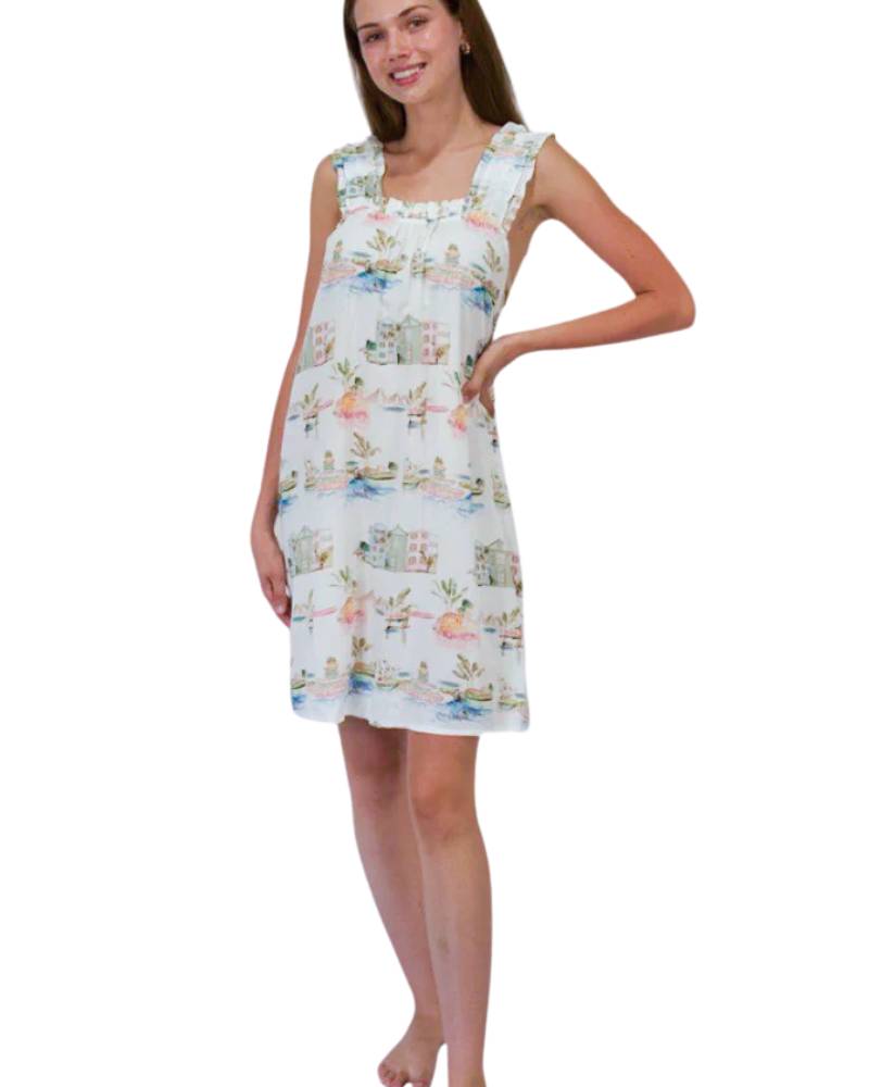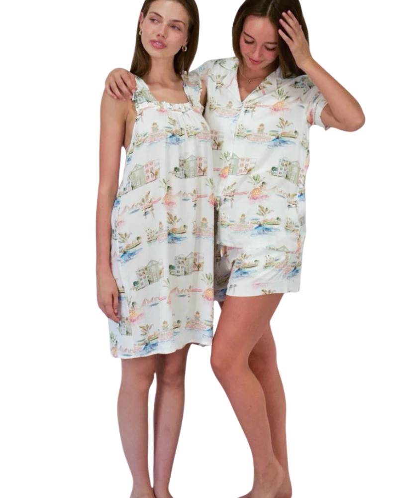Celebrate Charleston's charm with this exclusive collaboration piece featuring vibrant illustrations inspired by the Holy City's iconic character. Crafted from lightweight fibers for ultimate comfort, this ruffle chemise showcases delicate ruffled straps and timeless design details. A partnership with Amsterdam's prestigious Rijksmuseum brings artistic sophistication to your loungewear collection. Each set arrives in a self-fabricated, reusable pajama bag adorned with a satin bow—perfect for gifting or storage. An homage to Southern elegance meets museum-quality artistry.