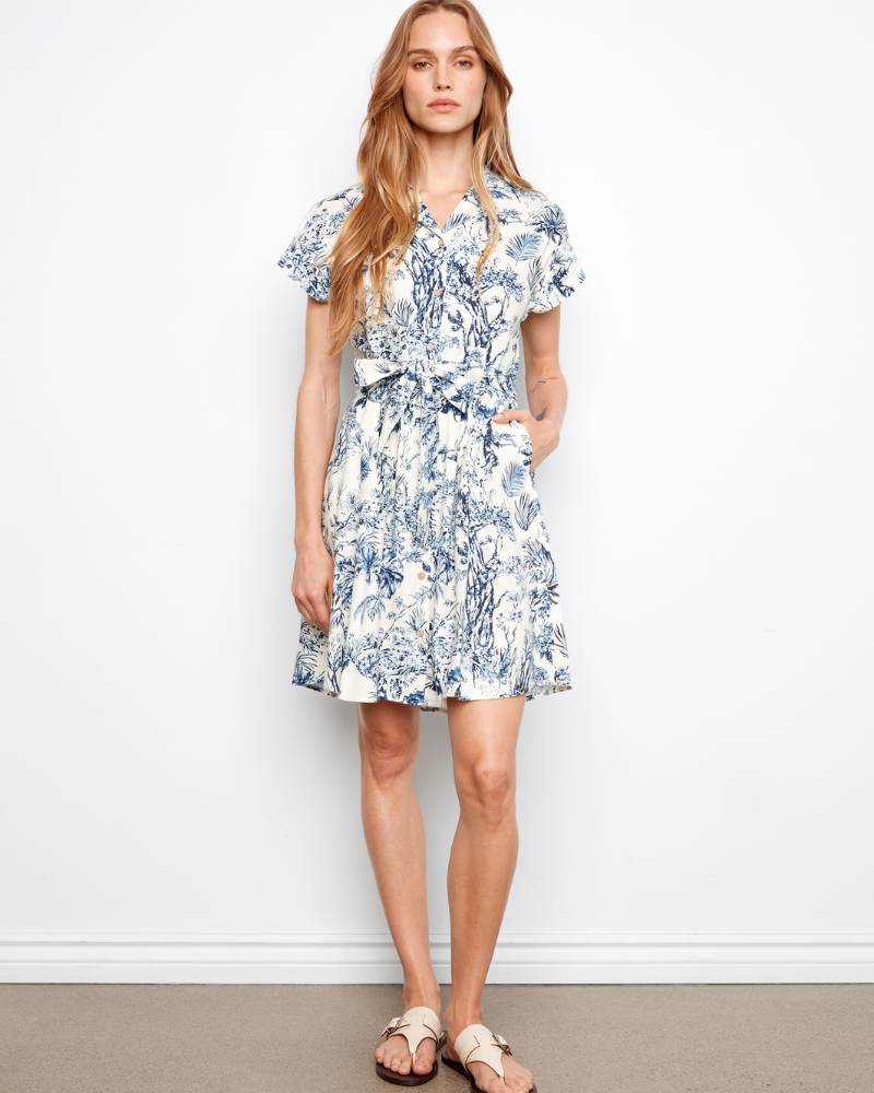 Linen Blend Button Short Dress
