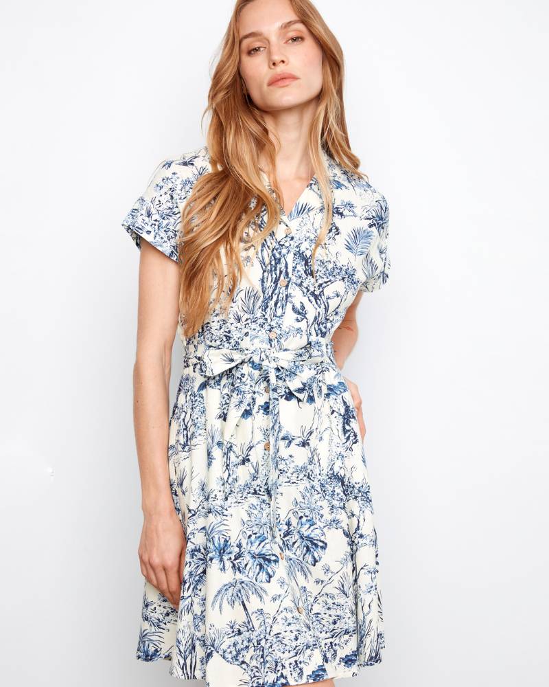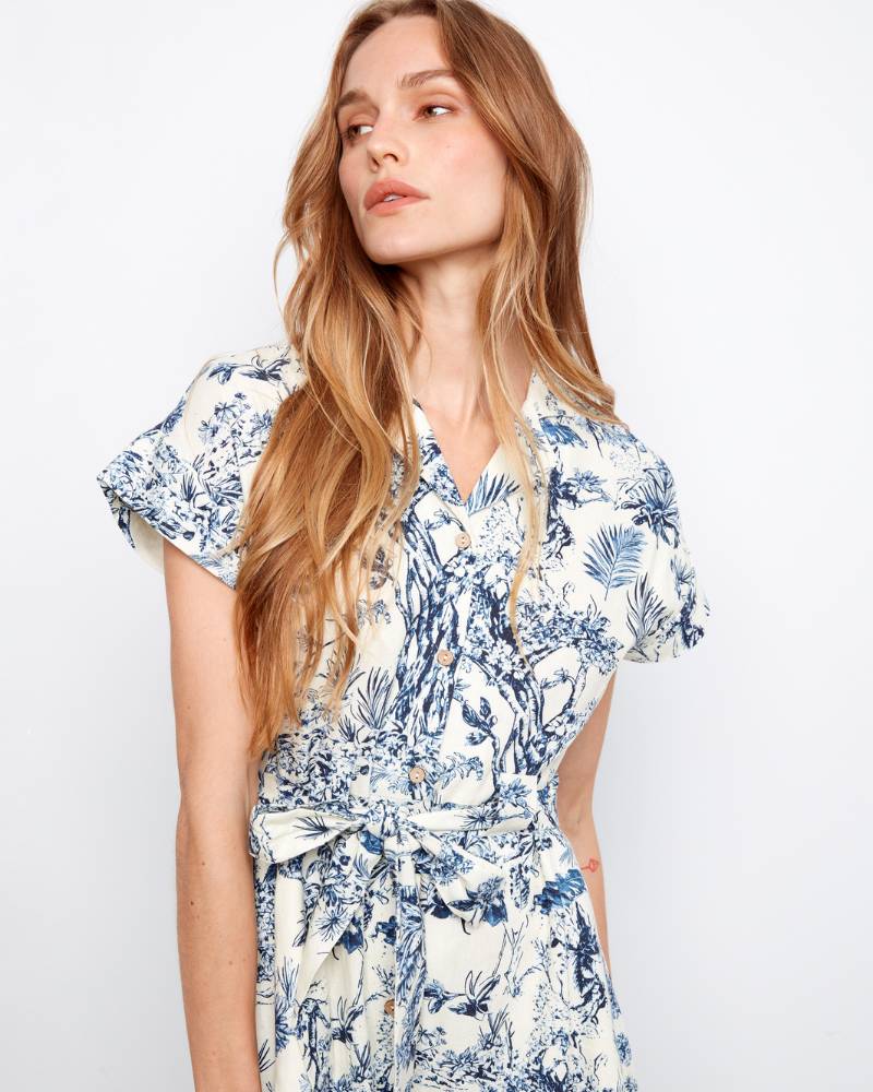 Effortlessly chic meets comfort in this linen blend button-front dress from Charlie B. The breathable 55% linen and 45% rayon blend keeps you cool and collected, while the self-tie at the waist cinches your silhouette just right. Practical hip pockets, a tailored neckline, and short sleeves make this your go-to for casual outings or relaxed weekends. At 37.5 inches in length, it hits just below the knee for a flattering fit. Care is simple—delicate wash in cold water, hang dry, and low-heat iron. Pure ease, pure style.