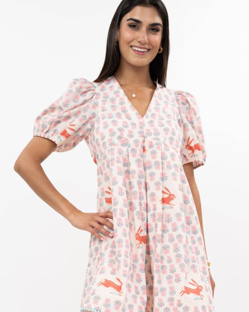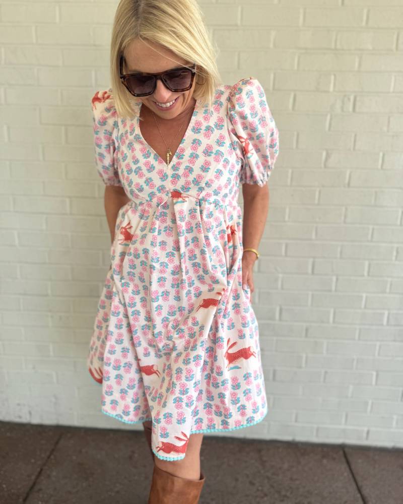 Hop into Easter style with this charming Running Rabbit Dress from Uncle Frank! Crafted from soft cotton and fully lined for comfort, this short dress features adorable bunnies scattered across the fabric. Practical pockets keep your essentials close, while the true-to-size fit ensures a perfect wear straight out of the box. Whether you're celebrating the holiday or just embracing spring's playful spirit, this dress brings whimsy and function together beautifully.